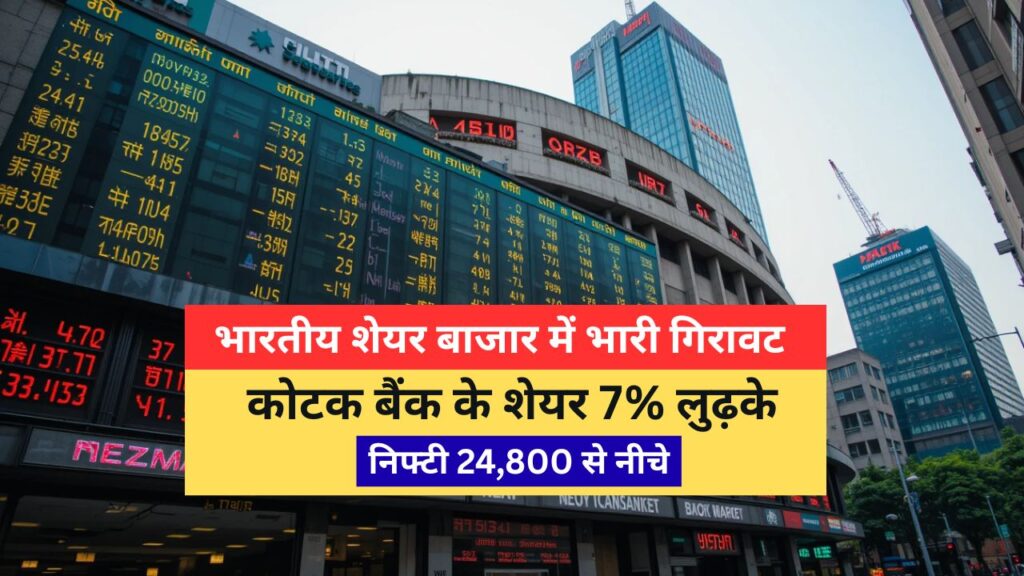 भारतीय शेयर बाजार में 28 जुलाई 2025 को एक महत्वपूर्ण गिरावट देखी गई, जिसमें निफ्टी 50 इंडेक्स 24,800 के स्तर से नीचे गिर गया और कोटक महिंद्रा बैंक के शेयरों में लगभग 7% की गिरावट दर्ज की गई। यह रिपोर्ट बाजार के प्रदर्शन, कोटक महिंद्रा बैंक की स्थिति, और इस गिरावट के पीछे के कारकों का विस्तृत विश्लेषण प्रस्तुत करती है।