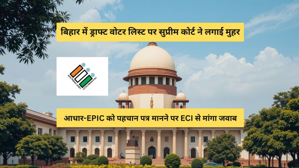 सुप्रीम कोर्ट ने बिहार के मतदाता सूची पुनरीक्षण पर ECI को जारी रखने की अनुमति दी, आधार और वोटर आईडी को स्वीकार करने का सुझाव दिया